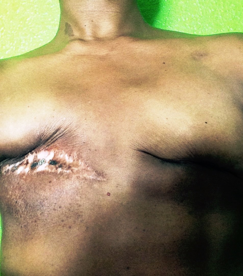 Of course, I lost my hair. I’m a bit vain, and I wasn’t sure how my bald head would look. Thankfully, it wasn’t oddly shaped, and I didn’t look like an alien bout the head. I still rocked a wig for most of my treatment. And makeup. I was always expecting to run into Morris Chestnut on my way to chemo but it never happened. I also had both breasts removed (bilateral mastectomy) this time. My attempt at reconstruction failed, because I’m just “lucky” like that.